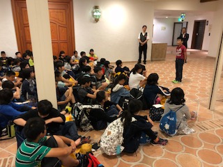 修学旅行2日目が始まりました。起床後、朝の集いを行い、朝食をとり、ホテルを出発しました。今後の予定は、鳥羽水族館を見学し、昼食後帰路につく予定です。全員元気に朝の時間を過ごしています。