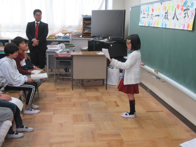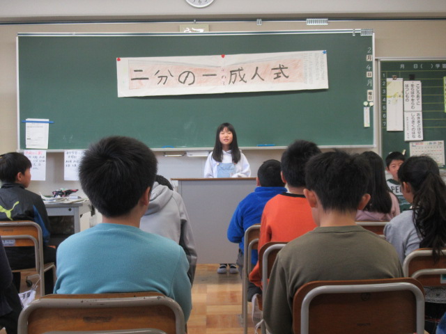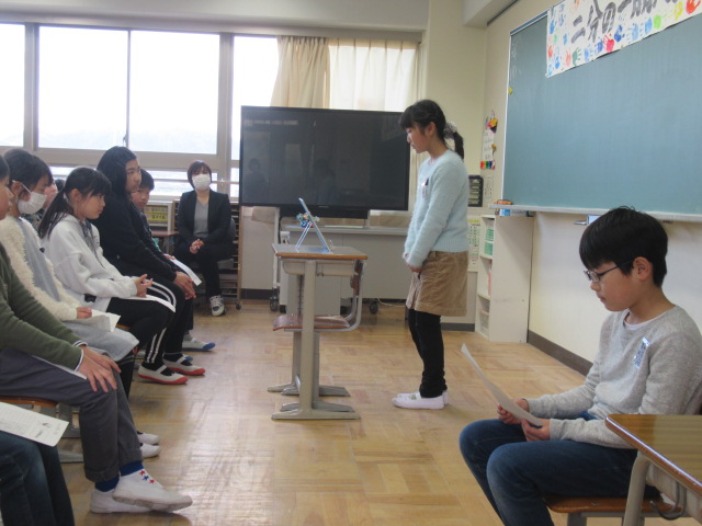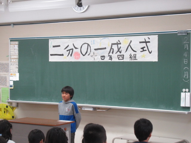 2月4日(月)、4・5年生の参観と学年活動・懇談会を行いました。学年活動・懇談会はPTA学級委員さんが中心となり、4年生は「二分の一成人式」を実施し、まず学級で「10年後の自分」に宛てた作文を、大勢の保護者の方々の前で読み上げました。