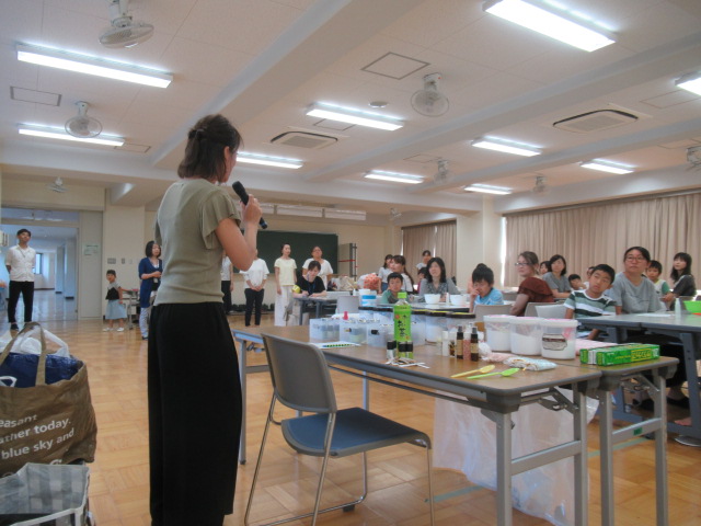 7月14日(土),PTA教養部の事業「アロマバスボム体験教室」が行われました。天候の関係で一週間延期しての実施となりましたが,総勢50名余りの参加者となり,大変盛会でした。