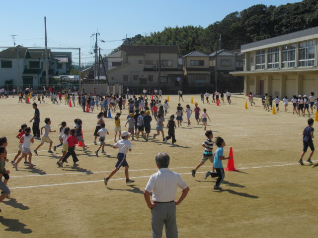 10月9日(火)から来月11月2日(金)に実施予定のマラソン大会に向けて、「走る意欲を高めること」と「体力向上」をねらいに中間ジョギングが始まりました。