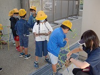 1年生が5月から一生懸命育ててきた、あさがおもきれいな花が咲き終わり、種も取りました。そして本日、咲き終わったあさがおのつるを使ってリースを作りました。子どもたちは、植物の命の循環を感じながら、大切に作ることができました。