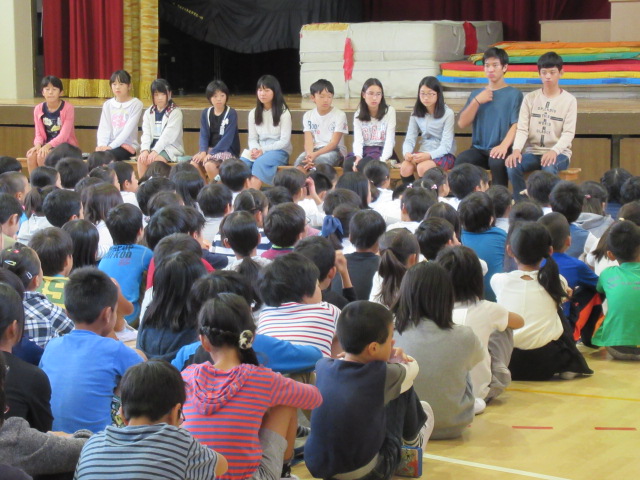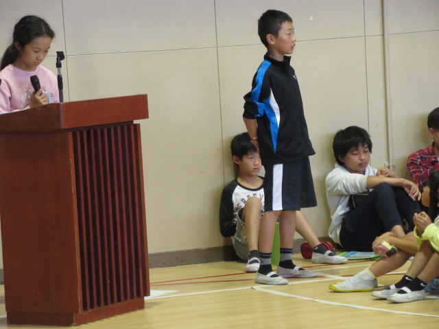 10月13日(金)に,体育館でミヤマキッズリーダー会を行いました。