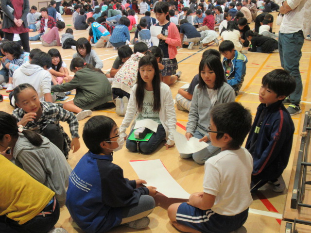 課題について,ミヤマキッズグループ毎に討議の時間を取り,課題を解決するためのアイデアを考え,発表し合いました。