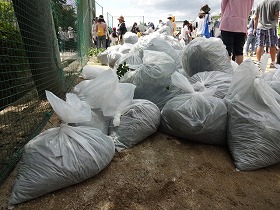 8月23日(日)の午前中、美化作業がありました。早朝より沢山の方々が集まってくださいました。児童も沢山来てくれていました。中庭やフェンス沿いや溝など、色々な場所の美化作業をしました。2時間ほどの作業で、こんなに沢山の草が集まりました。ご協力頂きました皆さん、本当に有り難うございました。