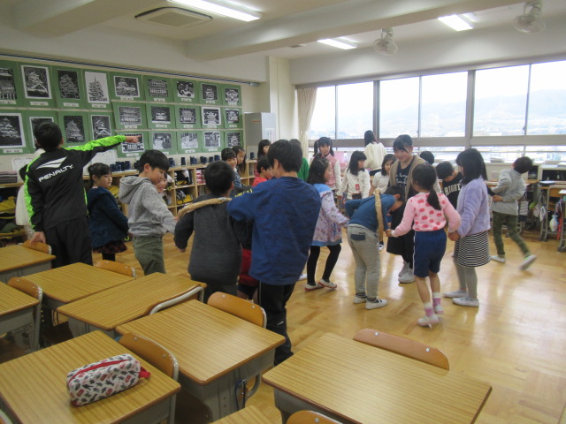 2月15日(金)、児童会の異年齢グループ活動「ミヤマキッズ遊び」を行いました。6年生を中心に計画した遊びは今回が最後です。教室ではフルーツバスケット・伝言遊び・輪くぐり競争・椅子取りゲームなど、運動場では鬼ごっこやドッヂビーなどを楽しんでいました。
