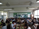 給食試食会をしました。5年生が林間に行っている間に行う、恒例の取り組みです。試食中には、給食が出来るまでを、写真を交えて見て頂きましたが、「安全に気をつけて作って頂いていることがよく分かりました。」等の感想を頂きました。たくさんの方々にご参加頂き、有り難うございました。