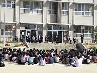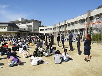続いて、新学期の始業式が行われました。2年生以上の在校生は、登校してき