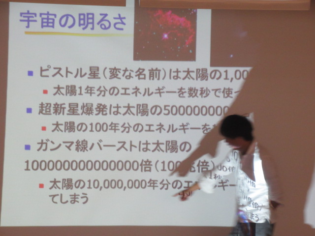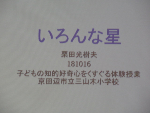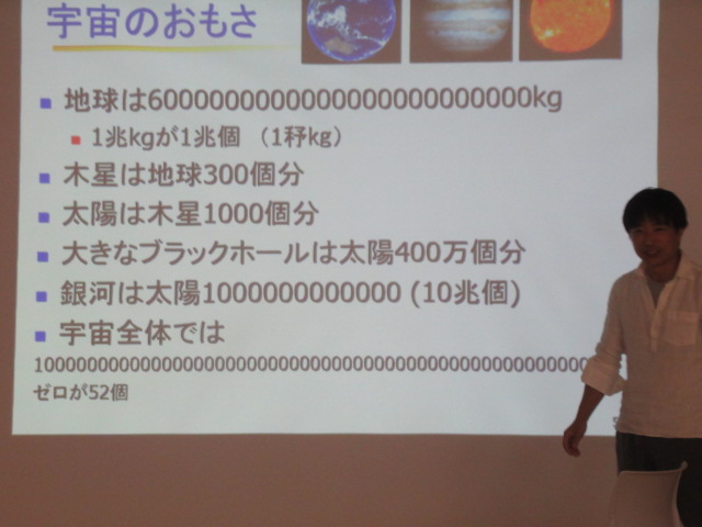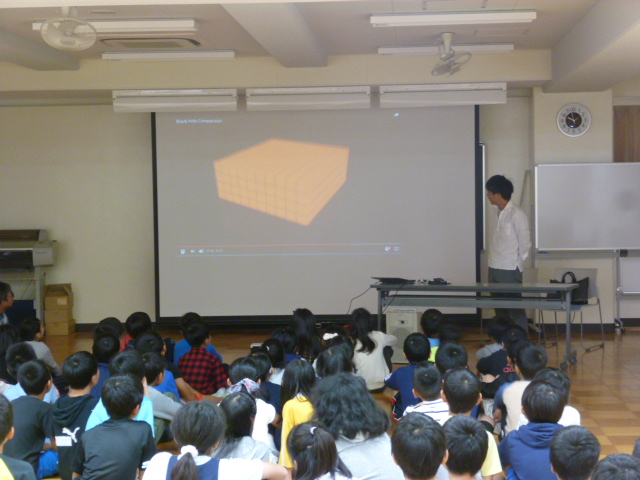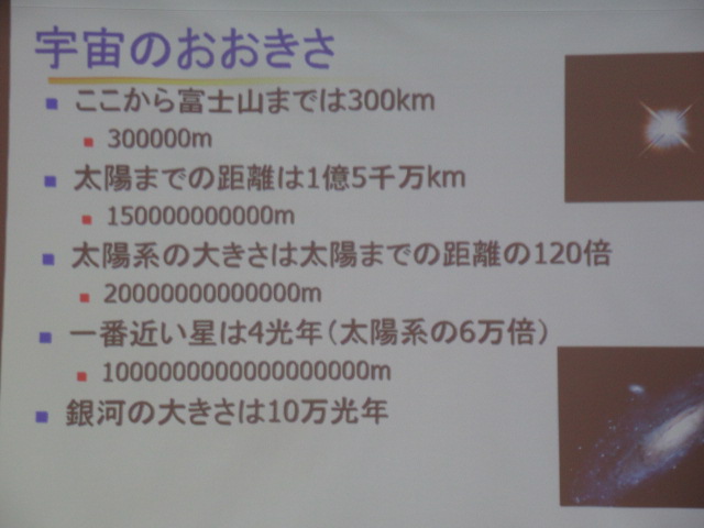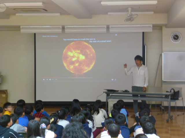 授業のテーマは「いろんな星」についてです。私たちの星「地球」「太陽系」「銀河」、そして地球を取り巻く「宇宙」とは何かについて数字や映像を交えながらわかり易くお話しいただきました。