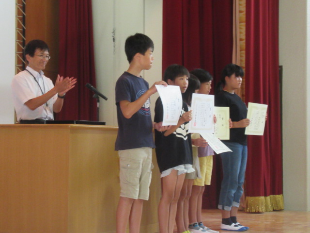 その後、「緑化ポスター」と「愛鳥週間ポスター」の入選者に伝達表彰を行いました。