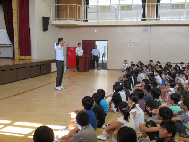 各担当の先生から「夏休みのくらし」「夏休みのプール」「交通安全について」等の話,たんぽぽ学級と児童会の運営委員から
