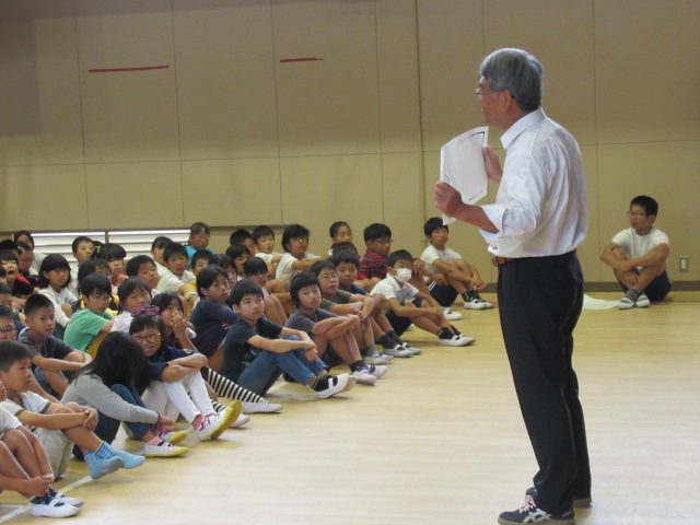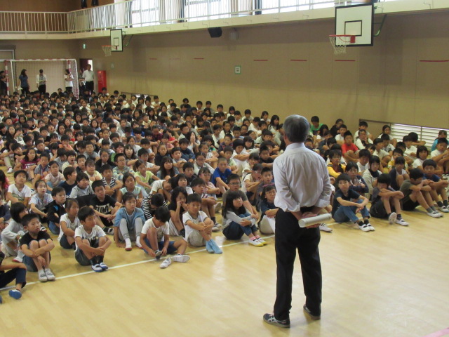 10月初めの全校朝礼では,校長先生から,「運動会が終わり,10月からは1年間の後半が始まるので,前半でつけてきた力を更に伸ばせるよう,目標をしっかり立てて努力を続けてほしい。」,「秋はいろいろなことににやる気を発揮できるよい季節なので,一人一人が『〇〇の秋』にどんなことをしたいか決めて秋を過ごしましょう,というお話がありました。