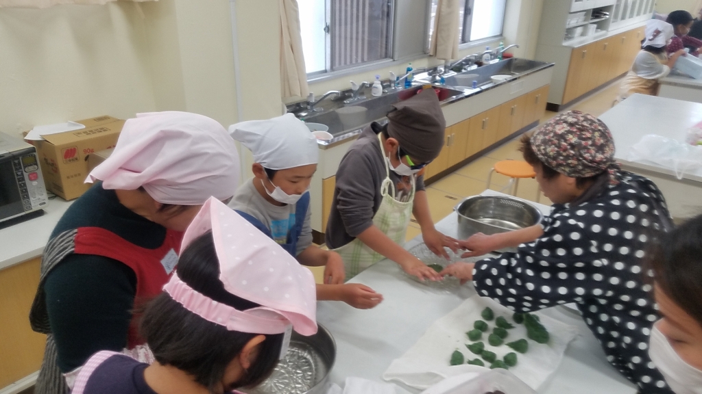 子ども達は、自分で作った出来立てのよもぎ団子をおいしそうに頬張り、大満足の様子でした。