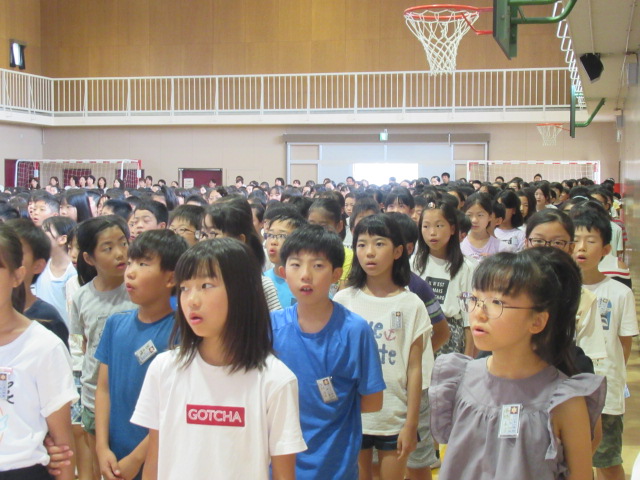 7月19日(金)、第1学期の終業式を迎えました。校歌斉唱の後、校長先生から充実した楽しい夏休みにするため「目標や計画を立てよう」というお話がありました。