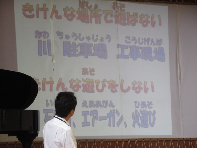次に担当の先生から、夏休みのくらしについて説明をしました。大切な命を守るために気をつけなければいけないことについてみんなで確認しました。