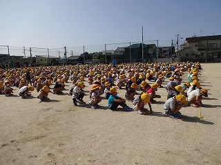 本日、今年度初めての全校朝礼を行いました。コロナウイルス感染拡大防止のため、運動場で間隔を広げて実施しました。児童と教職員合わせて約1000人が一同に集まったので、1年生も人数の多さに驚いている様子でしたが、学校にはたくさんの友達・お兄ちゃんお姉ちゃん・先生がいることが伝わったと思います。