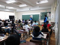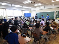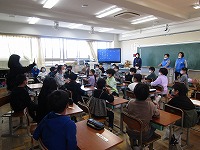 総合的な学習の福祉体験学習で手話を学習しました。福祉協議会の方たちから