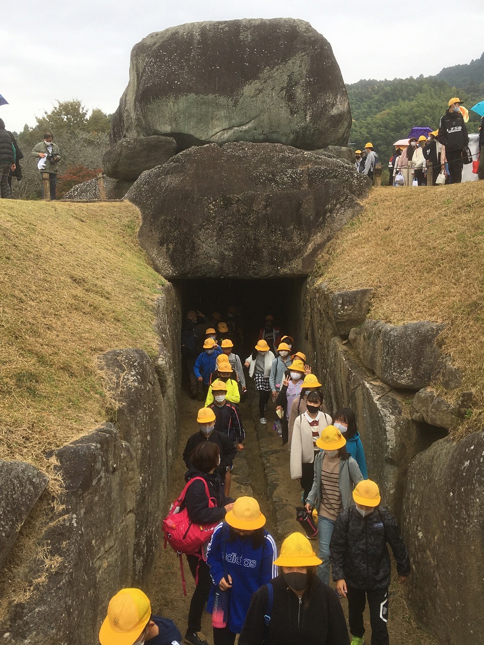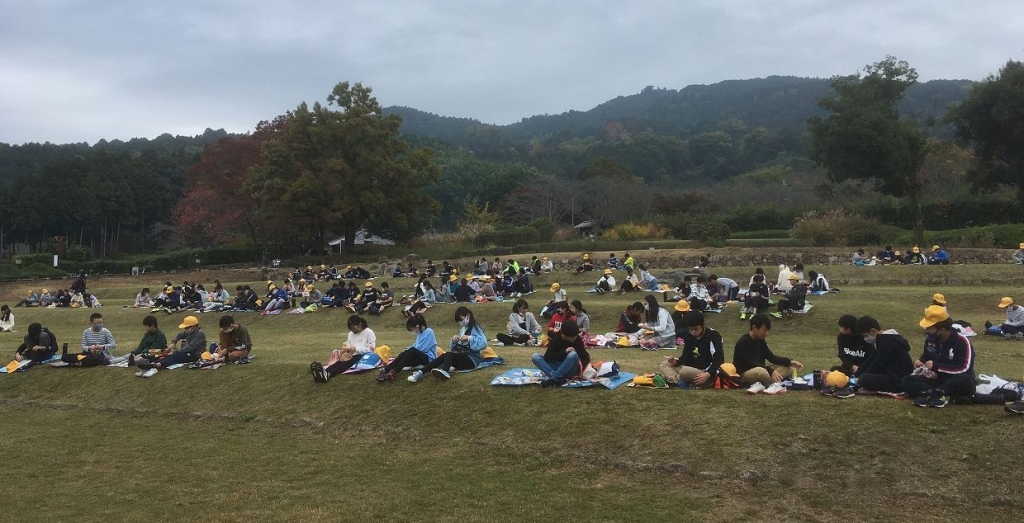 6年生は、修学旅行の代替行事として、奈良県明日香村へ校外学習に行きました。亀石や石舞台古墳、橘寺などをグループごとに実際に歩いて回り、目で見て、風に触れ歴史を感じていました。