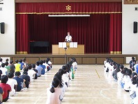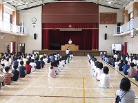 ピッリとした雰囲気の中、6年生が静粛な態度で式に臨みました。校長先生からは