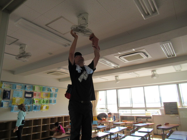 校舎内の掃除では,普段は手の届きにくい所まできれいにしていただきました。