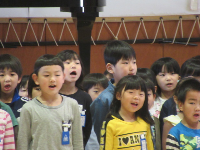 全校合唱「やあ!!」の後、1年生からは歓迎してもらったお礼の気持ちを込めた合唱がありました。