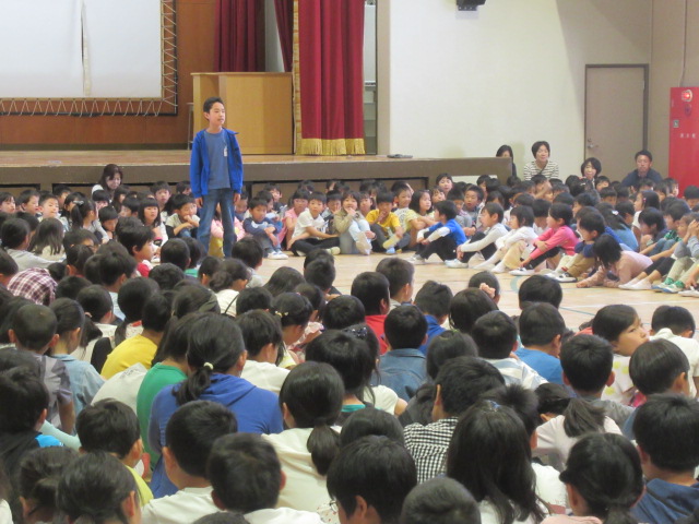 5月8日(水)に「1年生を迎える会」を行いました。1年生は6年生に手をつないでもらい、2~5年生の拍手の中を入場しました。