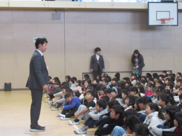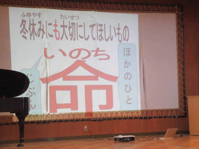 校長先生から、「家族の一員として役割を果たすこと」「しっかりあいさつをすること」等について、担当の教員から「冬休みの過ごし方や命を大切にすること」の話も行いました。子ども達は明日からの冬休みを楽しみにわくわくしているようでした。