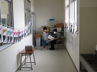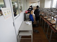 て掃き掃除、拭き掃除をやりました。その後、それぞれの担任の先生から一人