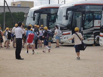 今日から6年生は修学旅行です。今年も新型コロナウイルス感染症の影響で、延期にはなりましたが、朝から大きな荷物を持った子どもたちは、体育館で出発式を行い、8:30過ぎに無事出発していきました。