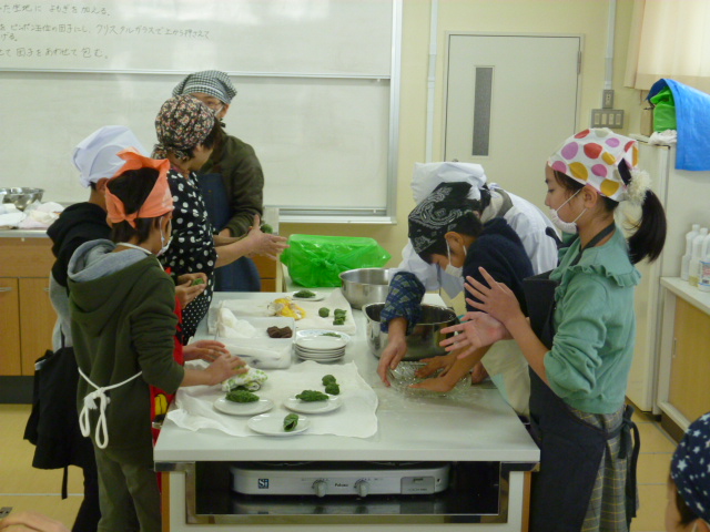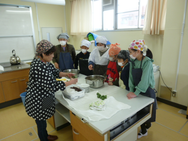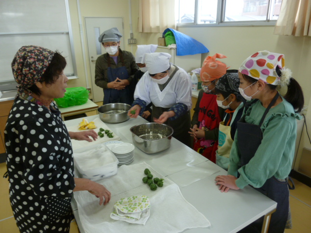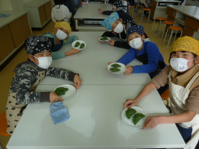 下準備をしっかりしていただいたおかげもあり、地域の伝統的な和菓子「よもぎ団子」が出来上がりました。4年生達はよもぎ団子の味を堪能していました。