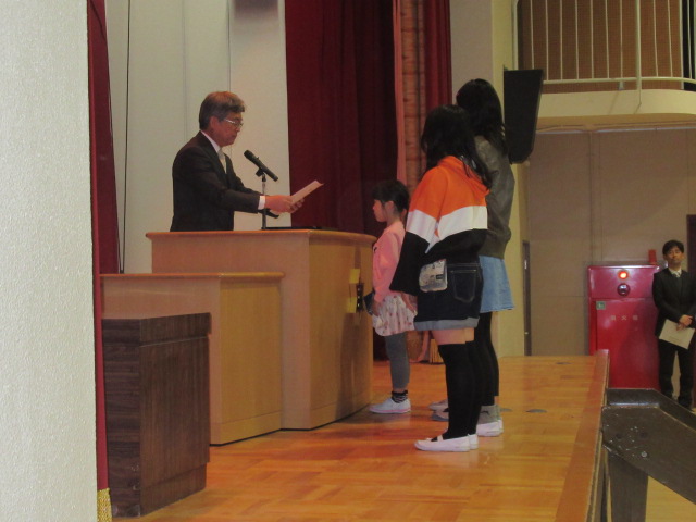 校歌斉唱の後、各学年の代表児童が校長先生より「修了証」を受け取りました。