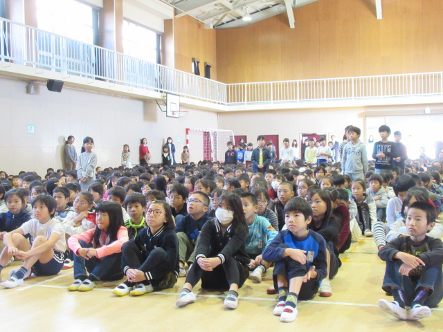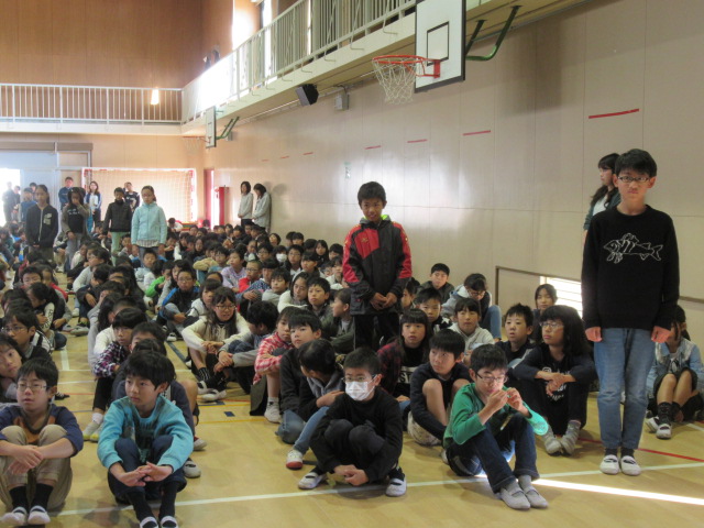 11月13日の全校朝礼は,先日行われたマラソン大会の上位入賞者の表彰と児童会後期委員会の委員長紹介でした。