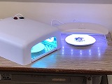 この教室では、シートに絵を描いて縮めるといった従来のプラ板ではなく、縮めた板の上に様々な飾りをつけて、それが取れないようにUVレジンで固める、といった手法を教えていただきました。