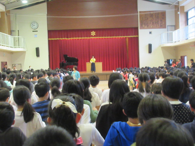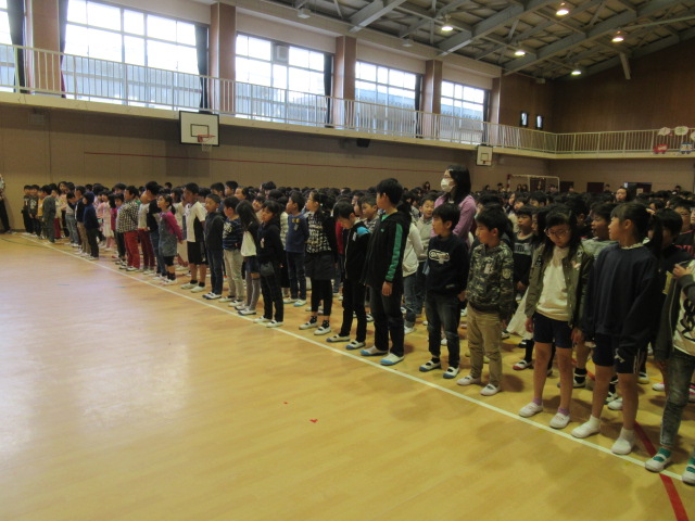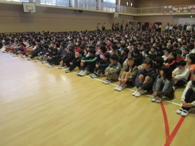 4月15日(月)、新年度最初の全校朝礼を行いました。全校児童数904名が体育館に集まり、学年・学級ごとに上手に整列できました。