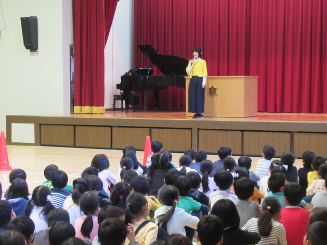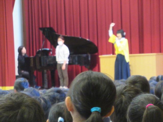 1年生が教室に戻ったあと、2~6年生で「1年生を迎える会」での全校合唱の練習をしました。全体での合唱は初めてでしたが、全員の歌声がとても素敵に響いていました。