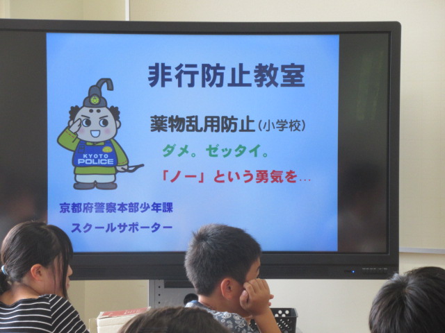 7月17日(火),京都府警より薬物乱用防止スクールサポーターの方々4名をお招きし,6年生児童を対象に「薬物乱用防止教室」を行いました。