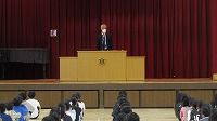 校長先生から各学年の代表が通知表を受け取りました。その後、校長先生