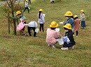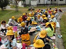 小学校に入学して初めての遠足に行きました。行き先は、同志社山手のさくらの丘公園でした。公園でどんぐり・紅葉した落ち葉、バッタなどたくさんの秋を見つけました。秋見つけの後は、楽しいお弁当タイム。美味しい弁当を口いっぱいほおばり、笑顔いっぱいでした。