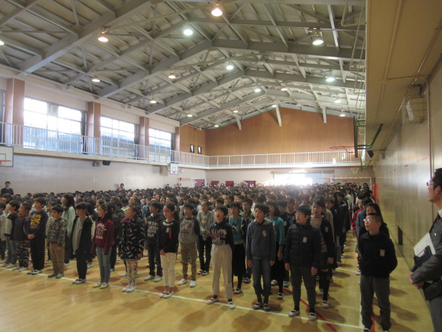 今日から第3学期が始まりました。始業式では、校長先生から「困難から逃げないようにしよう」、「心身ともに元気なミヤマキッ子になろう」というお話がありました。