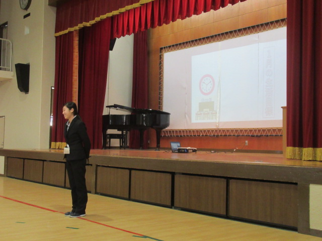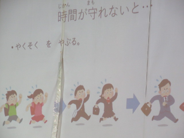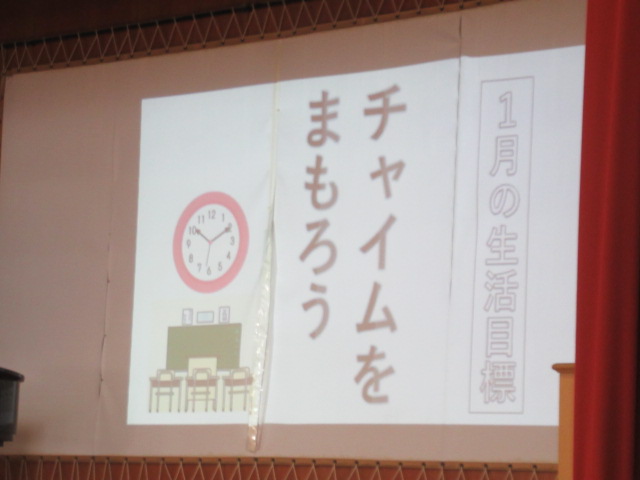 転入生紹介後、1月の月目標である「チャイムを守ろう」についての話がありました。