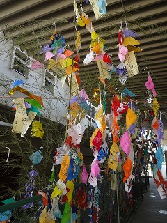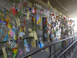 1年生の図画工作科では、来週の七夕に向けて、はさみやのりを上手に使って七夕飾りを作りました。体育館前の渡り廊下では、色とりどりの飾りや短冊が風になびいています。笹に結びつけられた短冊には、「ともだちとなかよくなれますように。」や「しょうらい、せんせいになれますように。」「コロナウイルスがなくなりますように。」など、みんなの願いが書かれていました。いつか、みんなの願いが叶うといいですね。