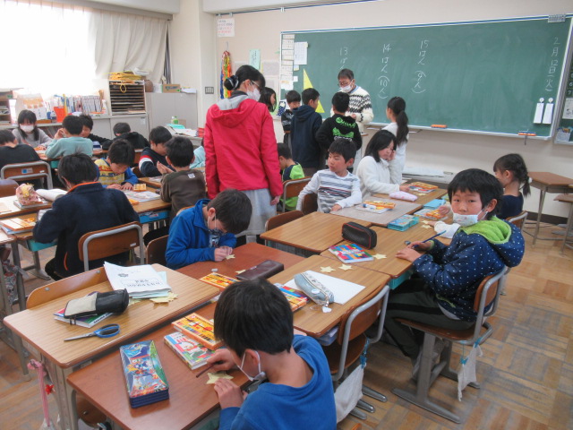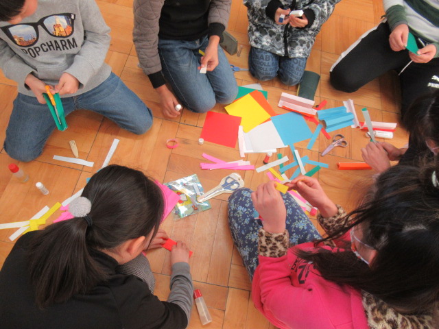 6年生への感謝の気持ちを込めて、みんなで教え合いながら丁寧に作業ができました。