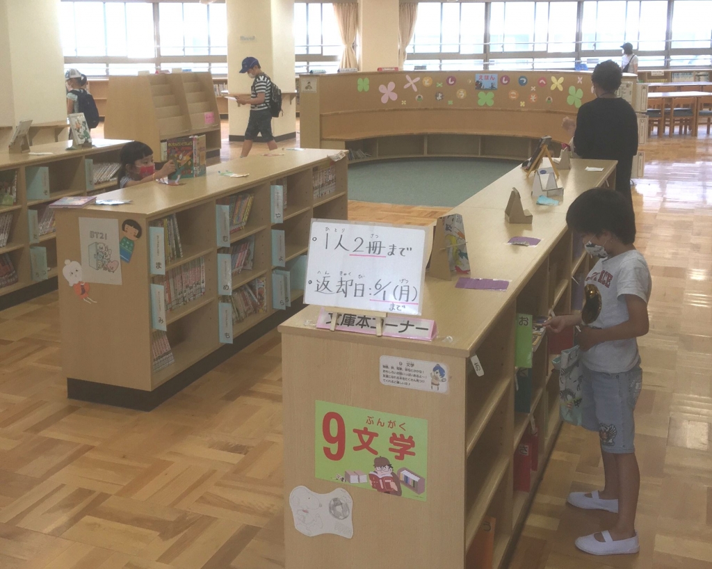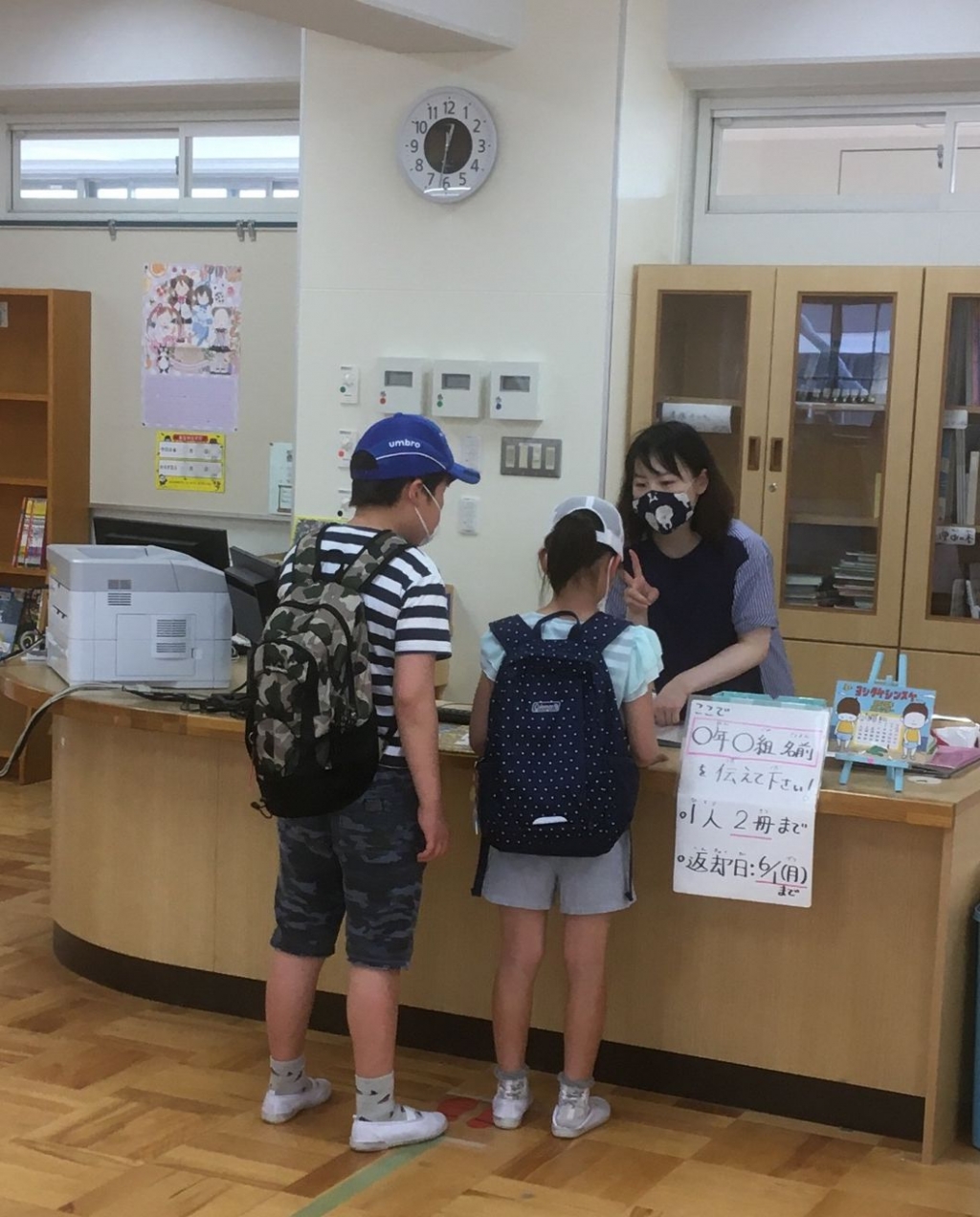 午後からも、学習課題を提出に来た子ども達がかわるがわる本を借りにやってきています。