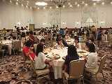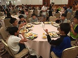 児童はホテルの大広間で、豪華な食事をとっています。