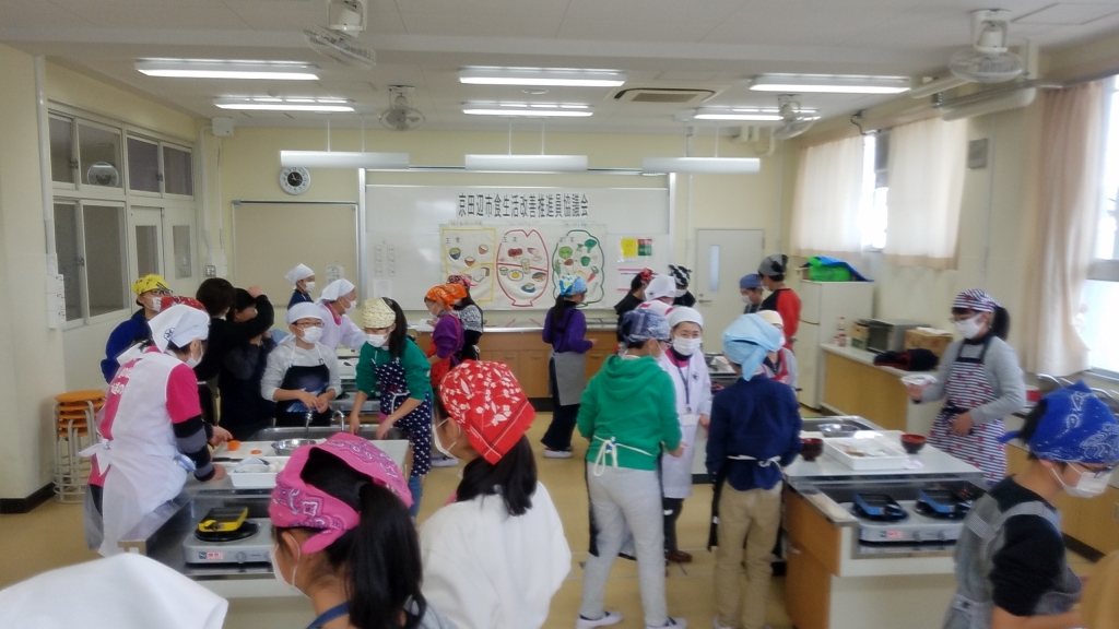 作り終えた後は、給食と共に、自分たちが作ったおかずの味を楽しんでいました。