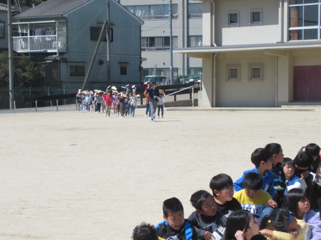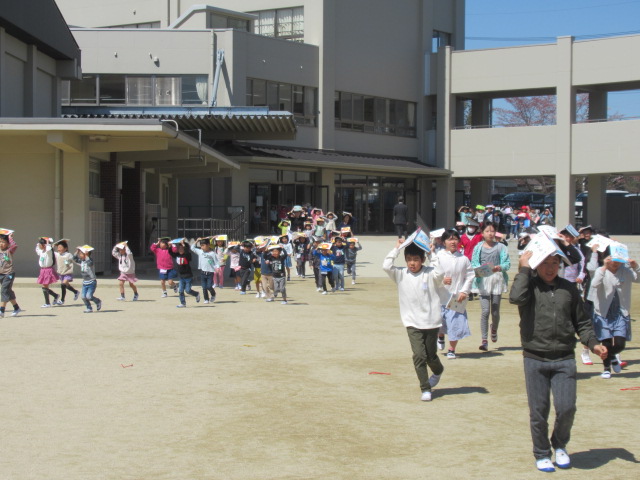 4月16日(火)、今年度初めての地震を想定した避難訓練です。①教室からの避難経路を覚える、②避難する時の態度を確認する、③迅速に行動する、の3つをめあてに取り組みました。