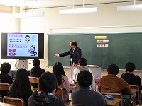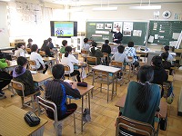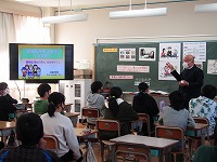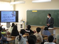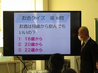 悪い影響を及ぼすことなど、クイズ形式で学習しました。画面に映る写真や資料