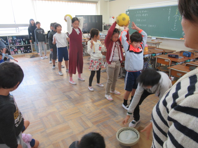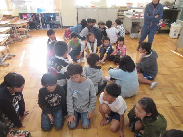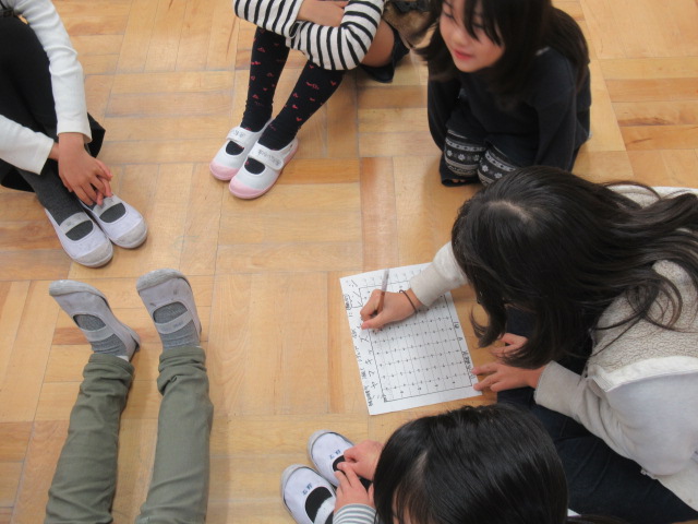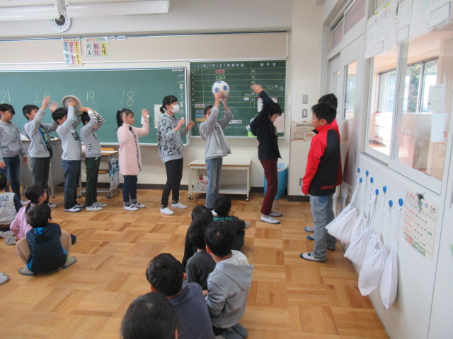 教室でできる簡単なゲームですが、実際にするのは初めてなので、難しそうにしている子もいました。上級生が下級生にどう分かりやすく説明(声かけ)するかが勝負の分かれ目になったようです。