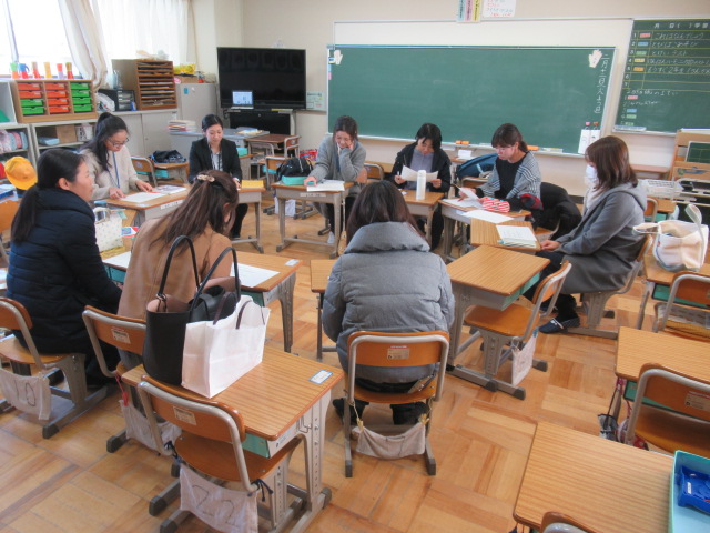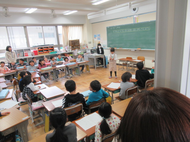 1年の参観は生活科「できるようになったこと発表会」でした。その後、学級ごとに1年生の「放課後の過ごし方」をテーマに懇談会が行われました。