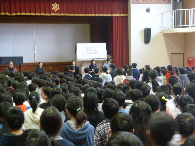 先週から5年生を中心に朝学習時に練習し始めてから初めての声合わせでしたが、しっかりと合唱することができました。