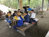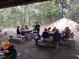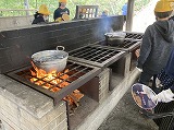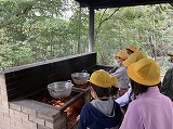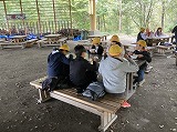 2日目の活動、野外炊飯の様子です。コロナ対策のため、個別の調理は出来ませんでしたが、かまどに火をおこしたり大きな鍋にお湯を準備したり、仲間と協力して作業しました。自然の中で友達と一緒に食べるお昼ごはんは、特別な思い出の一つになりました。